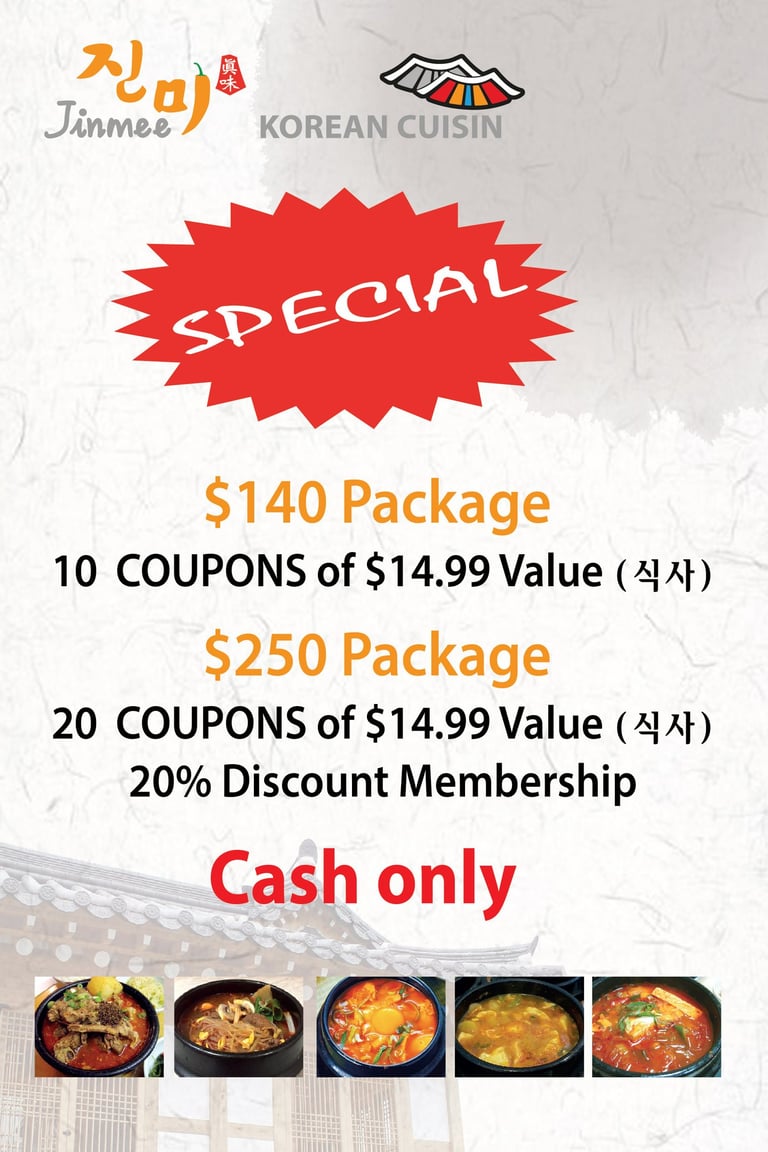 오늘 결제 금액에 $5 추가하세요. 다음 방문 시 $14.99 메뉴를 무료로 드실 수 있습니다. (메뉴 1개 이상 주문 시 사용)